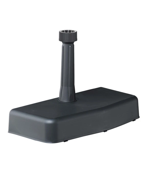 Für alle, die die Sonne lieben, ist ein Südbalkon einfach herrlich, denn dort scheint sie fast den ganzen Tag. Aber eines sollte jeder Sonnenanbeter heutzutage berücksichtigen: neben einem bequemen Liegestuhl ist ein Sonnenschirm das A und O für viele unbeschwerte Sommertage! Ein guter Sonnenschutz, der sich ganz auf die Platzverhältnisse eines Balkons eingestellt hat, ist dieser Beton Balkonschirmständer. Vor allem dank der rechteckigen Form passt der Beton Balkonschirmständer auch perfekt auf kleinere Sonnenplätze. Denn der Beton Balkonschirmständer lässt sich geschickt direkt an der Balkonbrüstung positionieren. So steht er nicht im Wege und nimmt nicht viel Platz in Anspruch, sorgt aber für einen ausreichend großen Schattenplatz auf Ihrer grünen Oase. Mit seinem Eigengewicht von 20 kg ist der Beton Balkonschirmständer stark genug, um Sonnenschirme bis zu einem Schirmdurchmesser von 200 cm sicher zu halten. Dank der robusten Konstruktion mit einem Betonkern können auch plötzliche Windböen dem Beton Balkonschirmständer nichts anhaben. Da der Kern mit Kunststoff ummantelt wurde, ist der Beton Balkonschirmständer auch sehr strapazierfähig und angenehm pflegeleicht.