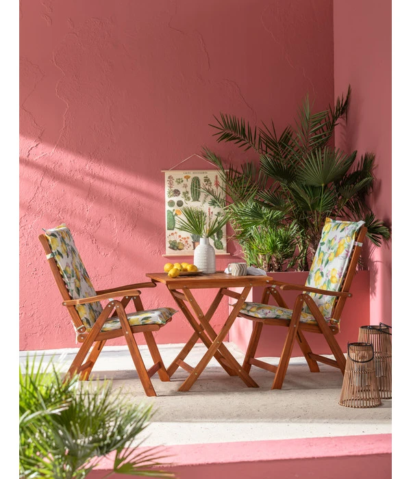 Wussten Sie, dass Akazienholz in puncto Festigkeit und Härte selbst Eiche überbietet? Deshalb macht sich dieses Holz seit einigen Jahren als Material für hochwertige Gartenmöbel unentbehrlich, die nicht bei jedem Schauer hereingeholt werden müssen. Für den Dehner Klapptisch Macao wurde selbstverständlich FSC®-zertifiziertes Akazienholz verwendet, also aus kontrolliertem Plantagenanbau, bei dem auch auf die Erhaltung der Ökosysteme und der Artenvielfalt geachtet wird. Noch ein Tipp: Obwohl der Dehner Klapptisch Macao bereits geölt wurde, empfehlen wir Ihnen, die Oberfläche regelmäßig mit Hartholzöl oder Hartwachs zu behandeln. Das verhindert das Austrocknen des Holzes und außerdem bleiben der schöne Holzfarbton und die attraktive Maserung erhalten.
