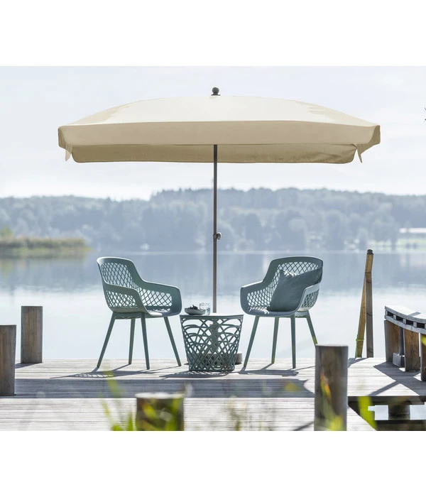 Mit seinen Maßen von 170 x 255 cm hat der Dehner Markenqualität Sonnenschirm Keros genau die richtige Größe, um eine rechteckige Essgruppe oder eine kleine Loungegruppe zu beschatten. Und das alles erledigt der Dehner Markenqualität Sonnenschirm Keros zuverlässig und in hervorragender Qualität! Der Dehner Markenqualität Sonnenschirm Keros hat ein stabiles Gestell aus pulverbeschichtetem Metall, das sehr witterungsbeständig ist. Die Bespannung ist aus strapazierfähigem Polyester und außerdem wasserabweisend imprägniert.