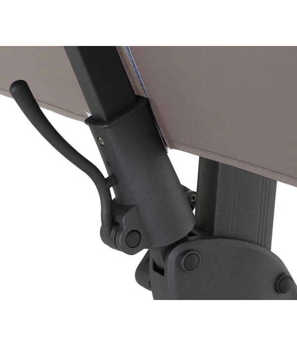 Mit dem Siena Garden Ampelschirm California N+ haben Sie einen echten Allrounder unter den Ampelschirmen entdeckt, der sich in die verschiedensten Richtungen und Stellungen bewegen lässt, so dass Sie bei fast jedem Sonnenstand Schatten finden. Sie können den Schirm mit Hilfe eines Fußpedals um 360° drehen; sie können die Schirmfläche entlang des Masts 8-fach neigen und last but not least können Sie ihn mit einem Hebel beidseitig auch noch um ca. 90° schwenken. Und das mit wenigen Handbewegungen und ohne Kraftaufwand, denn die Bedienung funktioniert mittels Fußpedal und Kurbel.