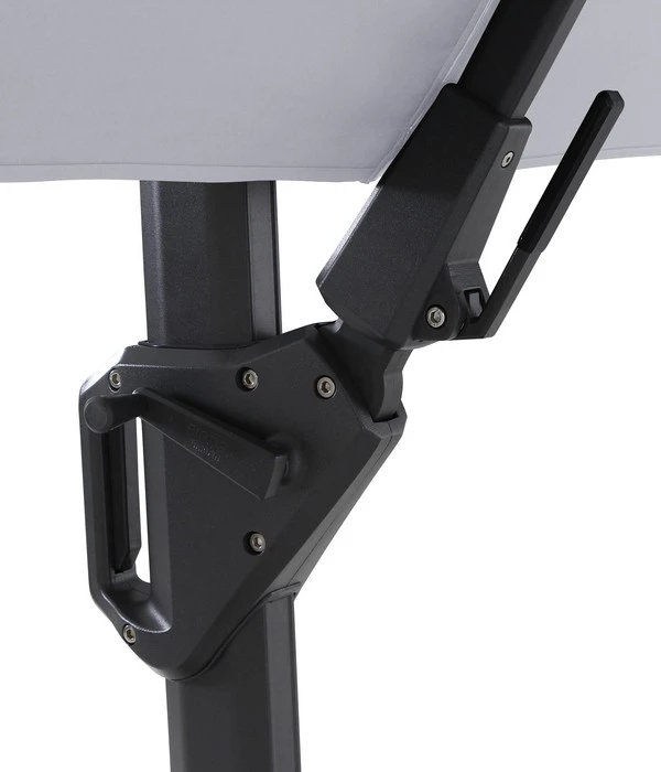 Das heißt natürlich nicht, dass der Siena Garden Ampelschirm Sunset N+ seinen Standort verändert; es heißt aber, dass er die unterschiedlichsten Positionen einnehmen kann, um Sie optimal vor der Sonne zu schützen. Und das übrigens auf denkbar komfortabel Weise, denn Sie werden dabei von einem Fußpedal und einer Kurbel unterstützt. Der Schirm lässt sich mit Hilfe des Fußpedals um 360° drehen, die Schirmfläche entlang des Masts 8-fach neigen und bei Bedarf mit einem Hebel beidseitig auch noch um ca. 90° schwenken. Wie hoch oder tief die Sonne am Himmel auch steht, Sie genießen immer wohltuenden Schatten!