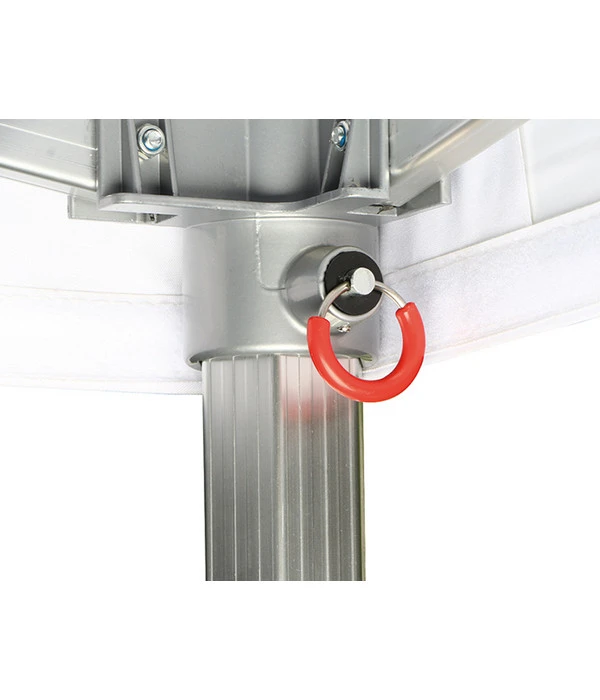 Der Siena Garden Faltpavillon Pro hat ein stabiles Scherengestell aus pulverbeschichtetem Aluminium mit Pfosten aus einen 50 mm Hexagonal-Profil, was für einen überaus stabilen, sicheren Stand sorgt. Deshalb können Sie das Gartenzelt nach der Feier ruhig noch ein Weilchen stehen lassen und ohne Gäste die wunderbare Atmosphäre im Inneren genießen. Das Dach besteht aus hochwertigem Polyestermaterial mit einer Stärke von 300 g/m² und ist PVC-beschichtet, sodass es Ihnen und Ihren Gästen einen Lichtschutzfaktor von 50+ bietet. Besonderes Extra sind die Seitenteile mit den großen Panoramafenstern, durch die viel Licht ins Innere fallen kann. Der Eingang ist beim Siena Garden Faltpavillon Pro 3-stufig höhenverstellbar und bei Bedarf mit einem Reißverschluss fest verschließbar.