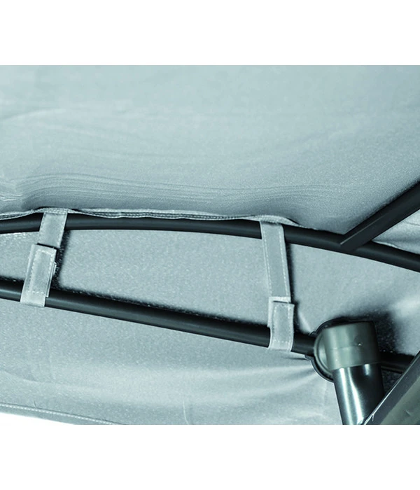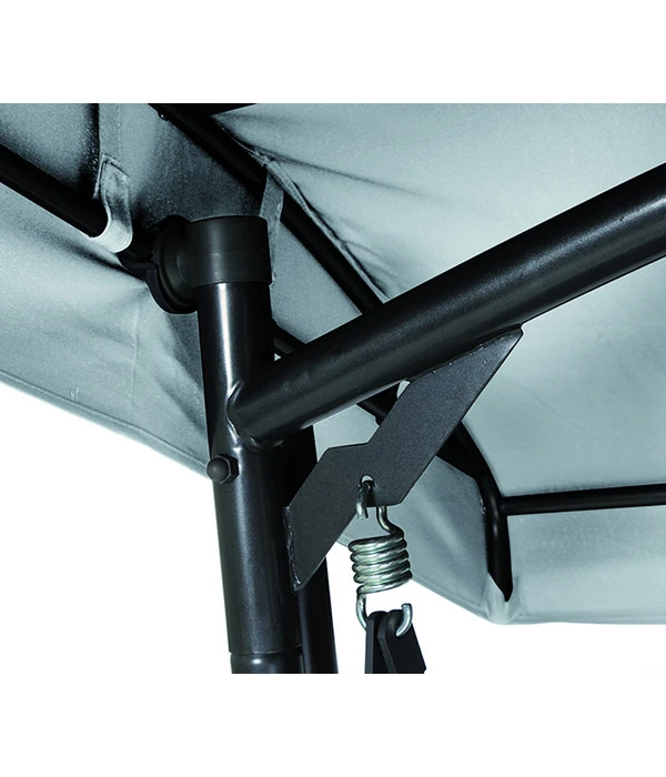 Die Konstruktion aus Stahlrohren ist das optimale Grundgerüst für die Aufhängung der Siena Garden Hollywoodschaukel Livorno. Sie bietet Platz für drei Erwachsene und das kippbare Dach erlaubt diesen, den Lichtschutz dem Stand der Sonne anzupassen. Für die Befestigung der Schaukel wurde keine starre Verbindung gewählt, stattdessen sind straffe Stahlfedern verbaut. Das leichte Nachgeben der Federn macht zum Beispiel das Hinsetzen angenehmer. Parallel dazu erhöht sich durch die Federung auch die Langlebigkeit der Aufhängung, weil sich die Kraft besser verteilt. Auf diese Haltbarkeit ist bei der Siena Garden Hollywoodschaukel Livorno generell ein sehr hoher Wert gelegt worden. Das Stahlgestell ist wegen der Pulverbeschichtung vor Korrosion geschützt. Sitzfläche und Dach sind dank der Gewebestruktur beziehungsweise der Dicke des Materials äußerst robust.